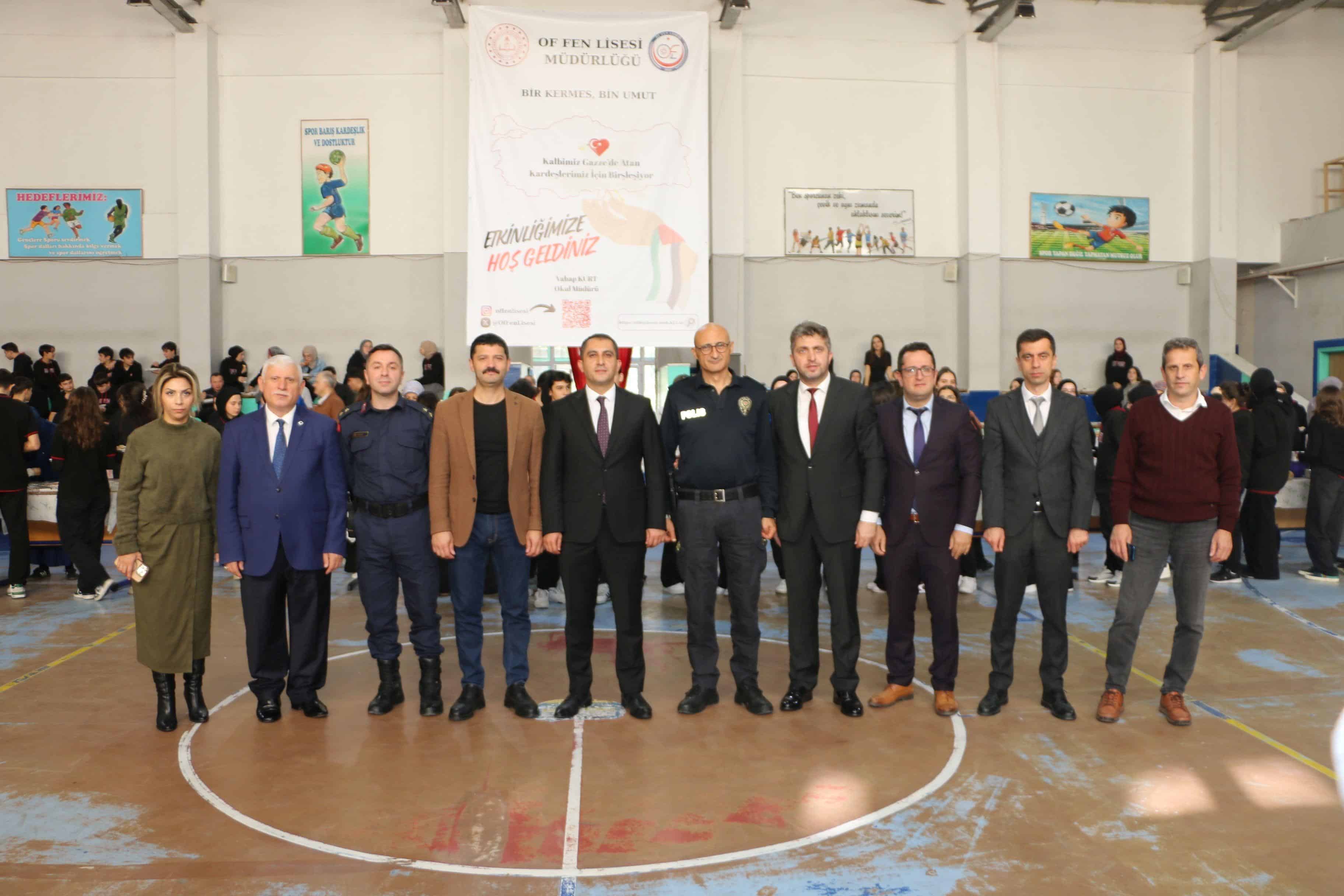 Of Fen Lisesi İsrail'in Gazze'de yaşattığı soykırım ve katliama engel olmak, Gazze'nin yanında yer almak için yardım kermesi düzenledi. "Bir Kermes, bin umut" sloganıyla geliri Gazze'ye bağışlanmak üzere okul idaresinin teşviki, velilerin çabaları ile hazırlanan yiyecek ve içecekler okulun spor salonunda düzenlenen organizasyonla ziyaretçilere sunuldu.